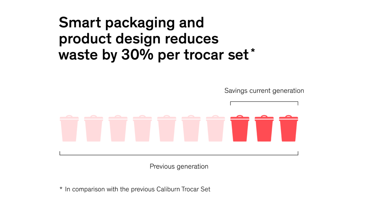 - New packaging and product design reduces waste per trocar set by 30 % 2